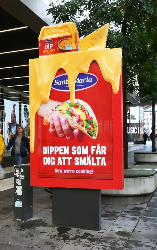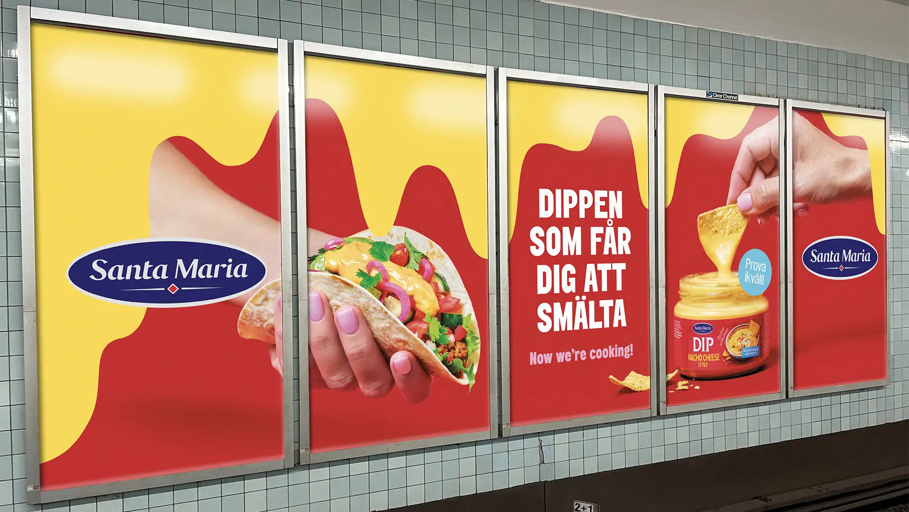 Nu när höstmörkret sakta lägger sig över Sverige, lyser de upp tillvaron i rött och gult. Vi talar såklart om utomhustavlorna från Santa Maria. Den här gången har vi doppat fingrarna (och nachosen) i dippen som får alla att smälta. En riktigt maxad kampanj som även syns streamat, i sociala medier – och naturligtvis nära butik. Testa du med!